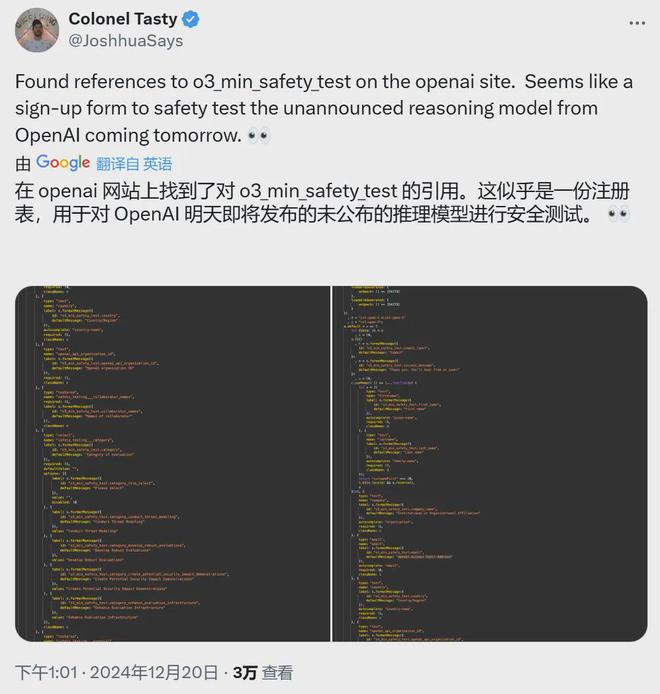 事实上,从昨天开始,OpenAI 就已经开始预热这个模型。而且已经有开发者在网上找到了 OpenAI 网站上对 o3_min_safety_test 的引用。