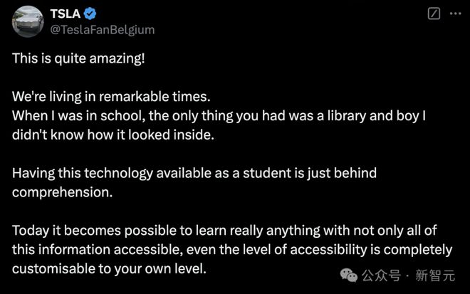 最后,正如网友TSLA的感受一样,「我们正生活在一个非凡的时代。今天,不仅所有的信息都变得触手可及,甚至连信息获取的方式也可以完全根据自己的水平量身定制,让学习任何东西都成为可能。」