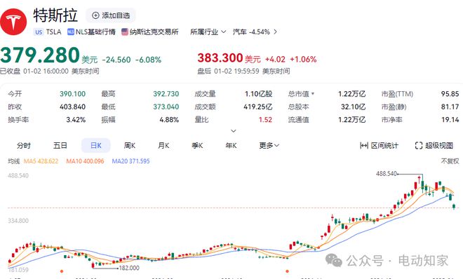 受此消息影响,特斯拉股价在周四的盘前交易中直线跳水,一度下跌近5%,美股开盘后,特斯拉股价持续下挫,盘中跌幅一度近7%,截至收盘下跌约6%。这是特斯拉自2015年以来,首次出现年度销量同比下滑,导致投资者对其未来盈利能力产生质疑,进而引发股价大跌。