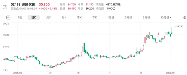 财联社1月3日讯(编辑 冯轶)今日港股“激光雷达第一股”速腾聚创(02498.HK)盘中出现暴力拉升,最高一度涨超18%,创近半年新高,引发市场关注。