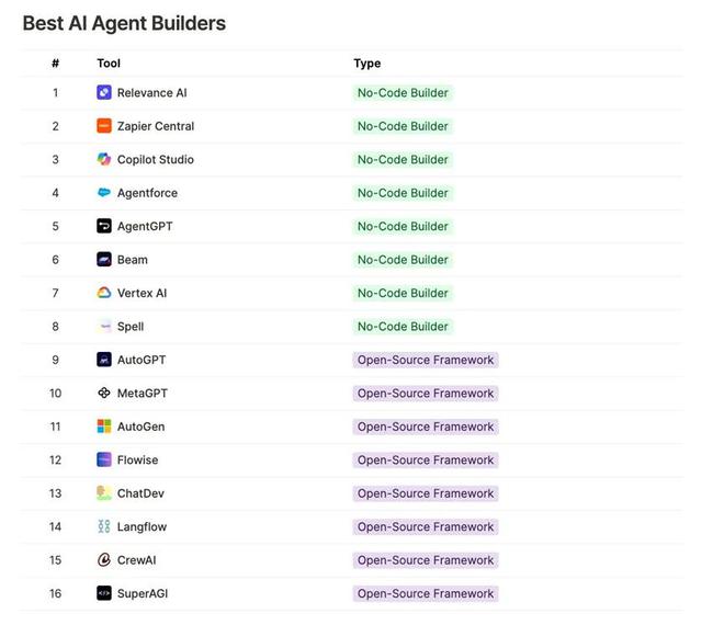 埃森哲ML工程师Alex Burton在其个人网站Useful AI总结了一份题为16 Best AI Agent Builders for 2025的榜单。