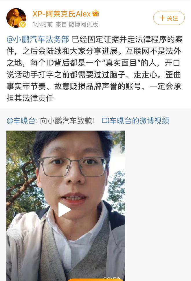对此,小鹏汽车公关负责人回应:小鹏汽车法务部已经固定证据并走法律程序的案件,之后会陆续和大家分享进展。互联网不是法外之地,每个ID背后都是一个“真实面目”的人,开口说话动手打字之前都需要过过脑子、走走心。歪曲事实带节奏、故意贬损品牌声誉的账号,一定会承担其法律责任