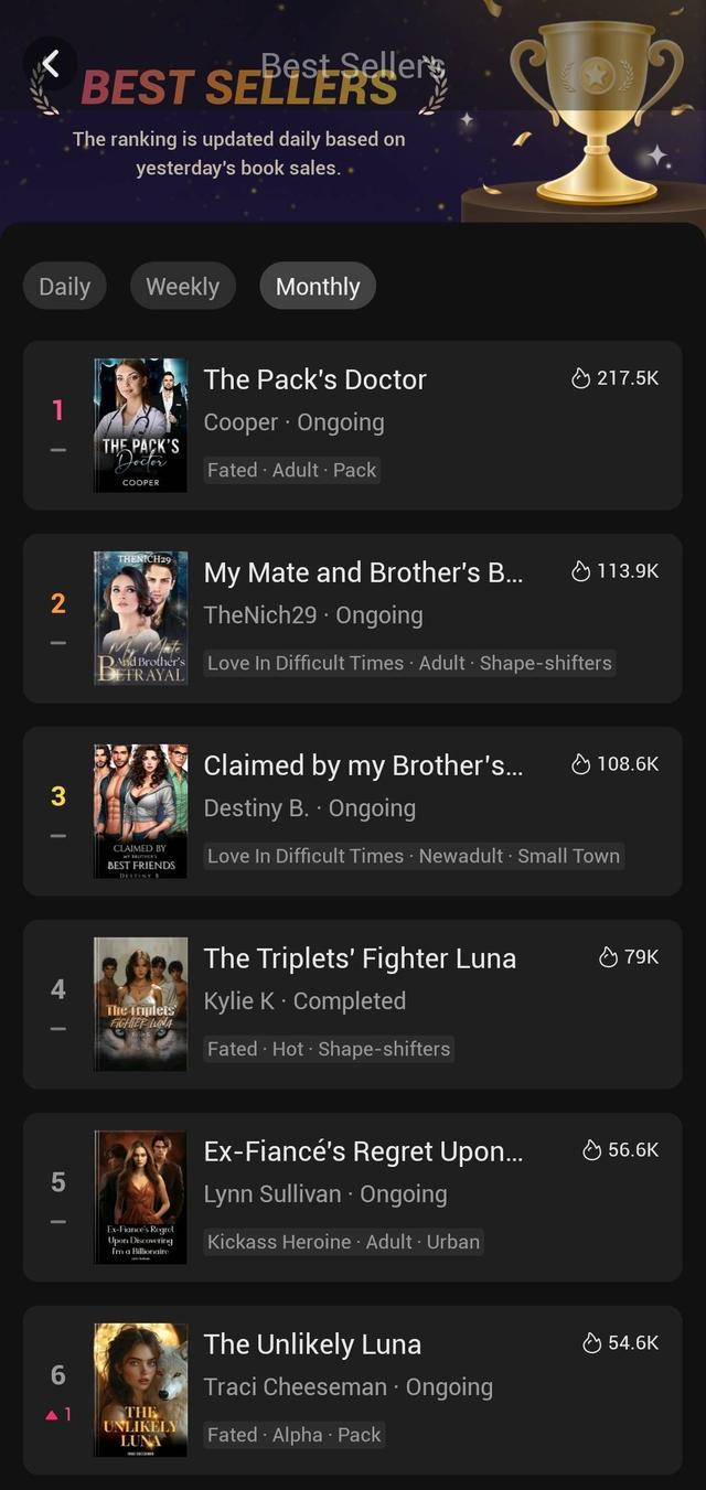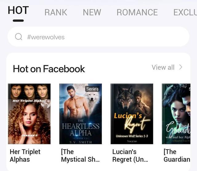 记者在Dreame平台看到,热门榜单中的作品主要集中在loving a werewolf(与狼人相爱)、kickass heroine(大女主)、fated(宿命、命中注定)等主题,多是狼人题材和霸道总裁变体的现代言情小说。