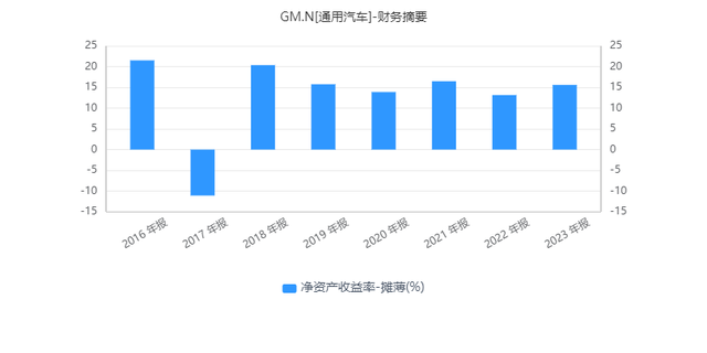 通用汽车2016-2023年的ROE表现 同花顺