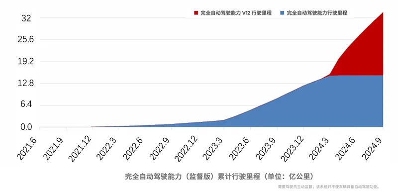 超高算力支撑背后是特斯拉FSD完全自动驾驶能力。据悉,基于“端到端”大模型算法和强大的算力,FSD完全自动驾驶能力将来可以让特斯拉不依赖高精地图,就可以在地球上任何一个地方行驶。同时,特斯拉还拥有领先的训练数据。截至2024年9月,FSD完全自动驾驶能力(监管版)累计行驶里程超过32亿公里,其中50%来自V12.5之后的版本。近日特斯拉发布了FSD完全自动驾驶能力V13.2版本。