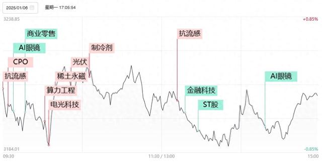 1月3日,微软公司表示,公司计划在2025财年投入800亿美元用于建设人工智能数据中心。算力硬件股中数据中心方向仍表现亮眼,但受到铜缆等高位方向持续补跌拖累,除去剑桥科技报收涨停外,共进股份以及“易中天”光模块三巨头悉数走出冲高回落。不过受到字节跳动发布自建数据中心变电站设计框架采购寻源公告的消息提振,数据中心变压器、灾备电源等新细分继续得到资金挖掘,中恒电气、动力源、科林电气等多股逆势涨停。目前对于算力硬件端而言,业绩层面主要取决于GB200以及今年将要发布的GB300能否实现量产。字节等国内巨头的算力资本开支则对应国产算力以及电源设备细分。而随着CES大会的召开在即,由于不少资金担忧利好兑现,成为今日AI眼镜概念资金抢跑展开补跌的主因。尽管英伟达发布新版显卡的消息刺激AI PC概念一度尝试补涨动作,但短期整个AI眼镜为首的端侧硬件的资金兑现压力仍难以逆转。