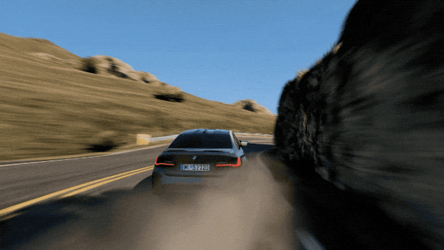 像电影场景里跑车在山谷里疾驰的画面,跟着汽车的轨迹加复杂运镜也是可以有的: