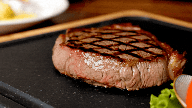 切肉时肉块的自然分离、刀面上的镜像、肉底部的油……细节如斯,细节如斯。