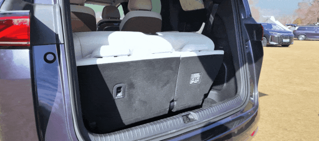 到了 MPV 最重要的第三排,夏还可以手动调节前后位置,在不需要运载太多行李的时候,第三排可以获得相对宽裕的空间。而后备箱还有下沉式的设计,可以一键电动折叠,跟友商的奥德赛、塞纳一样可以获得一个纯平的后备箱空间。