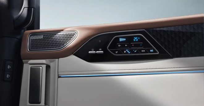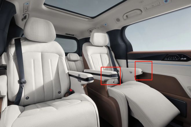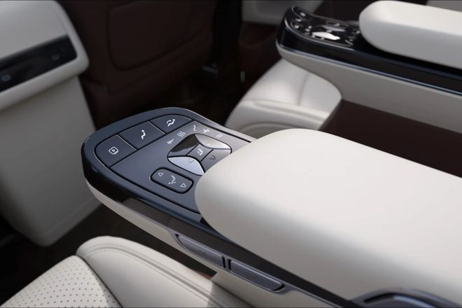 而靠内的把手往后拉之后,会出现一个全是实体按键的控制台,电调座椅、后排屏幕的开关都可以在这里设置,最大程度减少用户的学习成本。