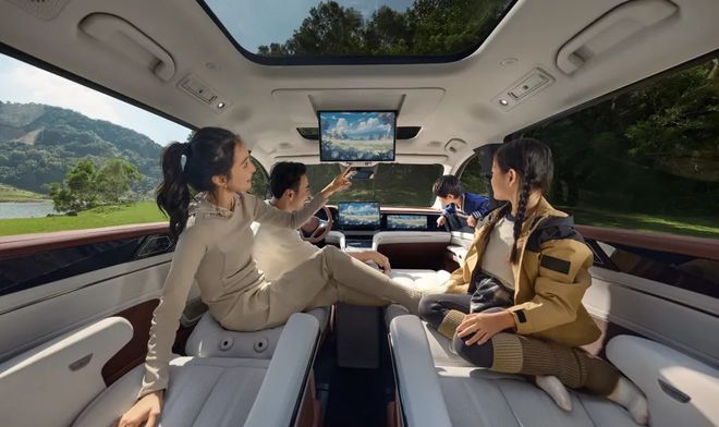 而尾部则是重新设计了寓意祥瑞的中国结尾灯,并没有采用比亚迪汉同款的纹理,线条更加平直,贴合 MPV 宽厚的尾部。