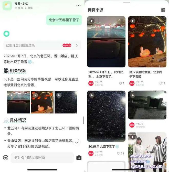 当点点回答北京降雪问题时,它并非简单调用天气数据,而是整合了当地用户的实地探访笔记——有人晒出了香山的第一场雪,有摄影爱好者分享了延庆的雪景构图。这种基于真实体验的内容集成,是小红书社区建立起的壁垒。