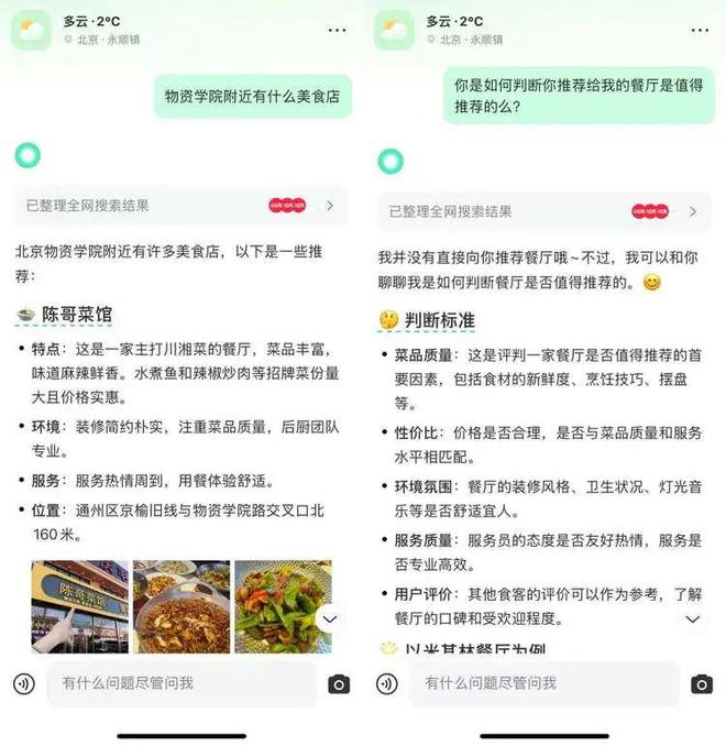 不过这些功能看起来强大,但还存在明显的大模型幻觉,比如我们在询问他通州保藏园附近有什么打卡的地点时,他给出的图文信息都不在园区内,只是格式看起来很工整正确。更有甚者也会出现胡乱联想,被用户吐槽一番。