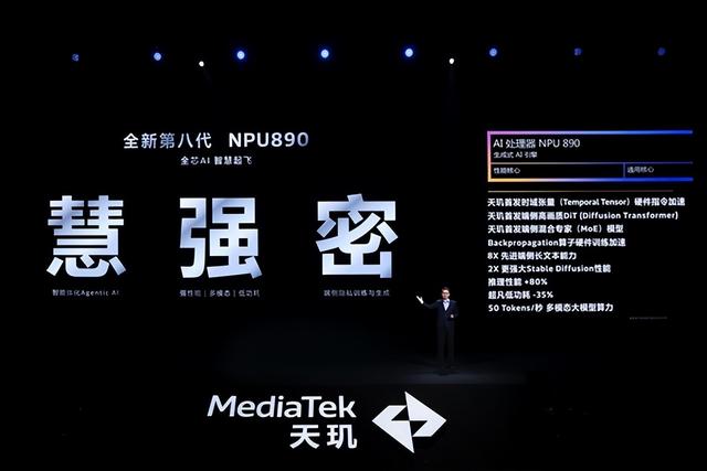 从天玑9300开始,MediaTek NPU更实现了技术飞跃,率先支持生成式AI,为用户提供文字、图像、音乐等终端侧生成式AI创新体验,带领开发者和用户共同迈向智能新世界。