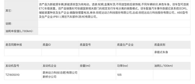 此外,萤火虫搭载了最大功率105kW的电机,供应商为蔚来旗下的“蔚来动力科技(合肥)有限公司新桥分公司”。