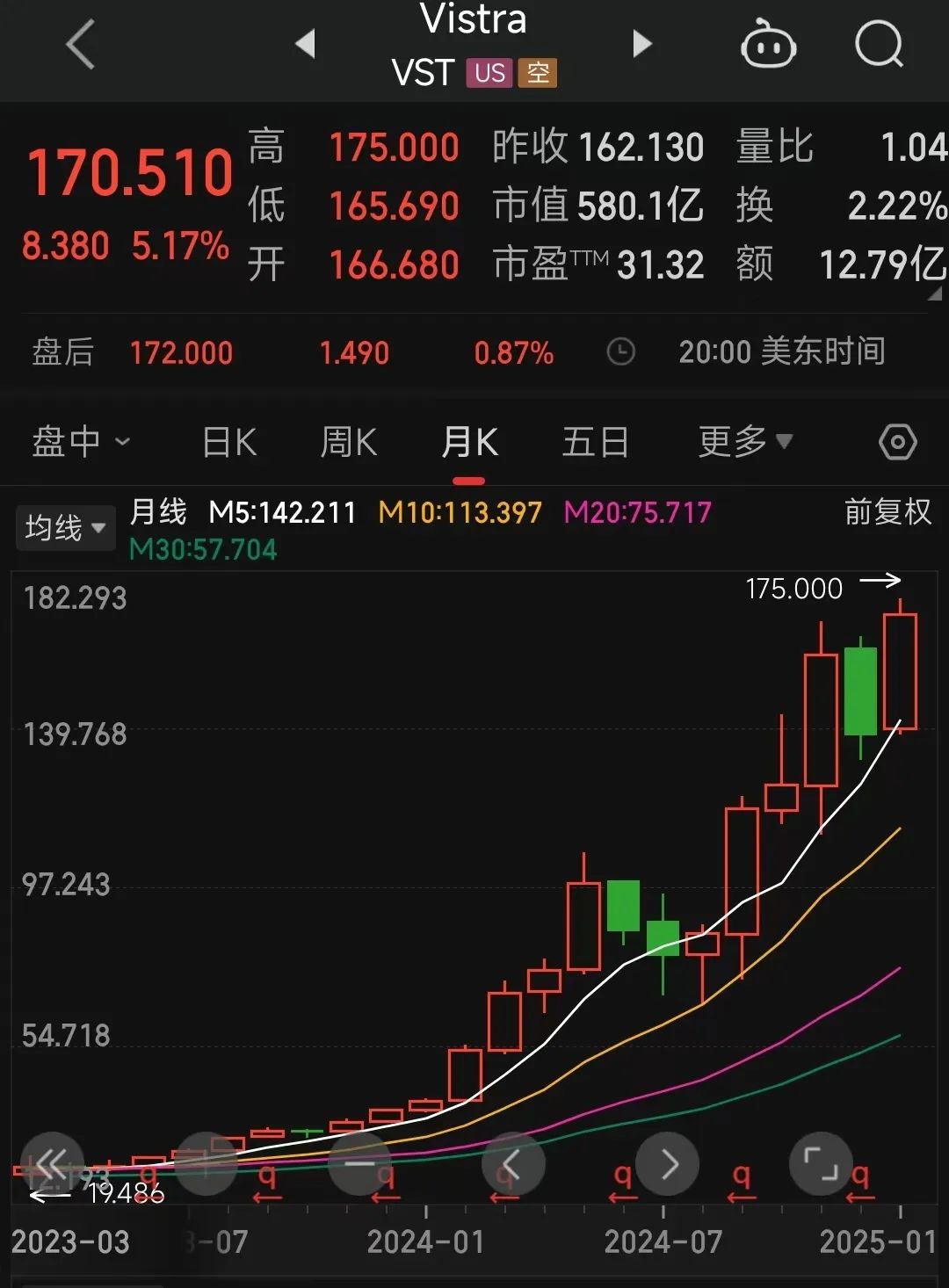 去年1月以来,相关个股涨幅惊人,美股Oklo(OKLO)涨116%、Vistra(VST)涨343%、NuScale Power Corporation(SMR)涨485%……