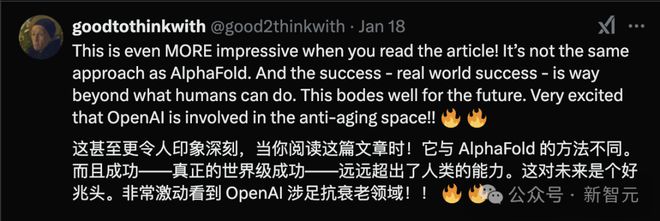 Retro Biosciences的首席执行官Joe Betts-Lacroix,表示新的技术是生物界的AlphaGo,指出即使在对模型原理没有完全理解之前,也能取得其令人瞩目的成果。Betts-Lacroix强调了GPT-4b micro在蛋白质重编程中的变革性能力,进一步巩固了在推动长寿研究中的重要作用。