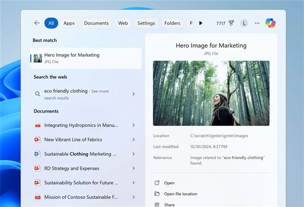 微软通过结合语义索引和传统索引,让用户能更轻松地查找文档、照片和设置,用户无需精准记忆文件名、内容或设置名称,可直接用自然语言描述搜索目标。