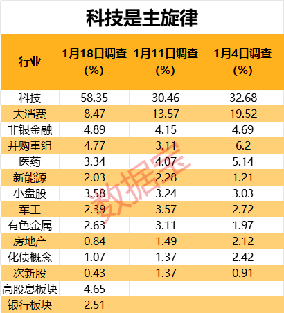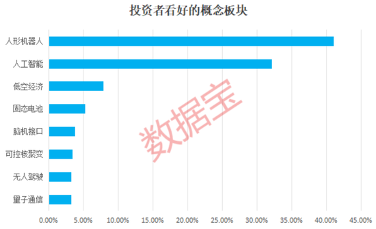 对于科技板块,分支较多,热点更加聚焦的人形机器人、人工智能成为市场共识,分别有41.05%、32.1%的受访者集体看好。