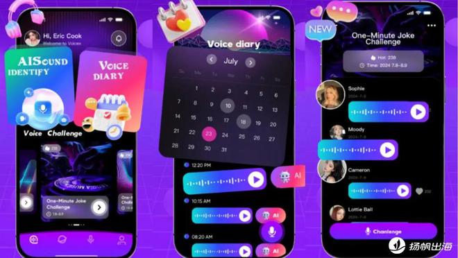 其中,在特殊玩法模块中,玩家能够体验到AI语音识别、AI日记、语音挑战三大趣味功能。AI语音识别功能用通俗的举例来解释,比较像社交应用产品中的"声音检测"玩法,即用户输入一段语音,应用就能利用AI功能对用户的声音做出分析(比如是少年音还是大叔音),进而给出一些点评。有别于同类玩法中AI给出的严肃分析,VXlive的语音点评以幽默和独特为特色,颇具趣味性,如此既能让用户对自己的声音有基本判断,同时还能满足年轻用户的偏好。