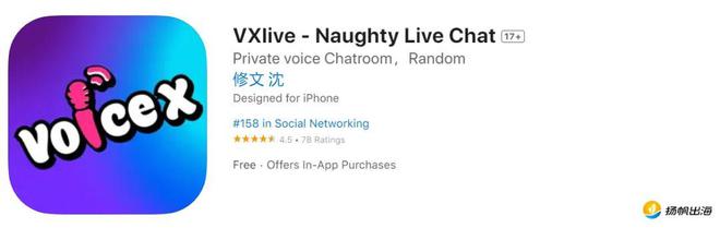 ① VXlive在海外上线分了多个不同的包体。除了VXlive -Voice Call &Live Chat之外,还有名称为VXlive:Voice Chat,Adult Share、VXlive - Naughty Live Chat的两个应用包(或更多),除了名字类似之外,宣传图、描述、开发者、Bundle ID均显示一致,因此可以确定这些产品均为同一个。也正因如此,我们前面对VXlive进行的数据统计可能并非全貌,除了我们本文提到的VXlive -Voice Call &Live Chat这一包体成绩(印度等多个地区TOP40名左右)外,VXlive - Naughty Live Chat这个应用包在App Store中的社交应用分类下也位列158名,所以综合来看,其真实的下载和营收应该会更多。