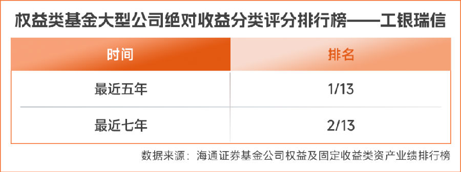 3、权益类大型基金公司排名来源于海通证券,数据截至 2024年12月31日。工银瑞信绝对收益位列大型权益类公司近七年(2018.01.01-2024.12.31)行业2/13,近五年(2020.01.01-2024.12.31)行业1/13。