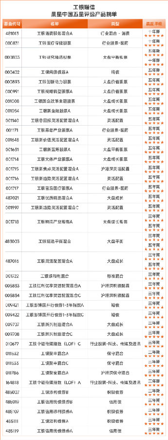 优异的长期业绩获得了权威机构的高度认可。截至2024年末,工银瑞信旗下30余只基金获得Morningstar晨星中国三年期、五年期、十年期五星评级,群星璀璨!