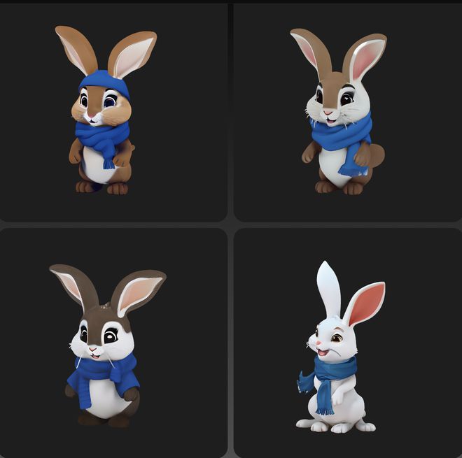 界面新闻记者尝试输入“一只戴着蓝色围巾的兔子”,经过近7分钟的等待,平台即自动生成出如下图像: