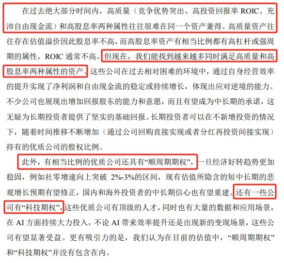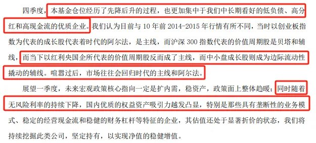 四季报中,赵枫说了对红利类资产的看好。