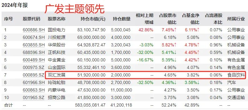 把双汇发展买进了十大重仓股。
