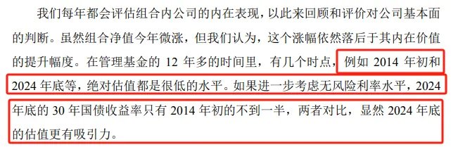 1)2014年初和2024年底,市场的绝对估值水平都很低。如果考虑到无风险利率的下降,2024年底30年期国债收益率只有2014年初的不到一半,显然2024年底的估值更有吸引力。