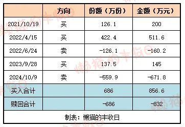 2021年10月19日、2022年4月15日、2023年9月28日,一共分三笔,买了价值856.6万元的基金。