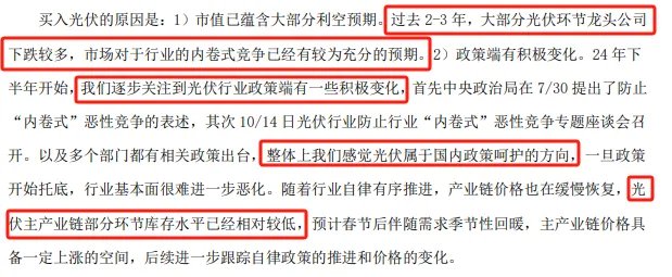 2)买入光伏有三个原因:首先,过去2-3年,光伏龙头公司大跌,已经对市场利空有充分预期;其次,光伏行业政策端也出现了一些基金变化,政策上整体是呵护光伏的;3)行业库存已经降至较低水平,随着春节后需求回暖,具备一定的涨价空间。