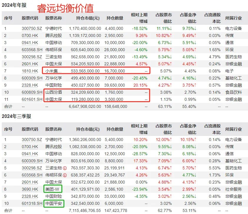 四季度,他把美团、中国平安踢出了十大重仓股,换成了小米、山西汾酒。