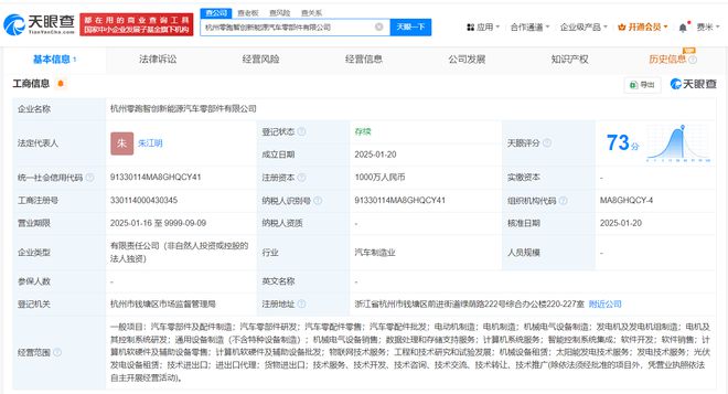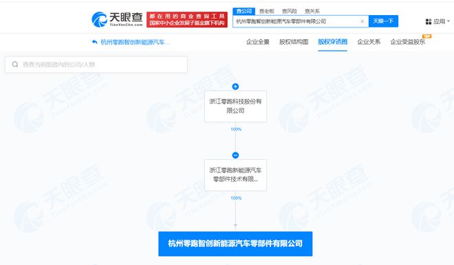每经AI快讯,天眼查App显示,近日,杭州零跑智创新能源汽车零部件有限公司成立,法定代表人为朱江明,注册资本1000万元人民币,经营范围含汽车零部件及配件制造、汽车零部件研发、汽车零配件零售、太阳能发电技术服务、光伏发电设备租赁、技术进出口等。股权全景穿透图显示,该公司由浙江零跑新能源汽车零部件技术有限公司全资持股,后者为零跑汽车(HK.09863)全资子公司。