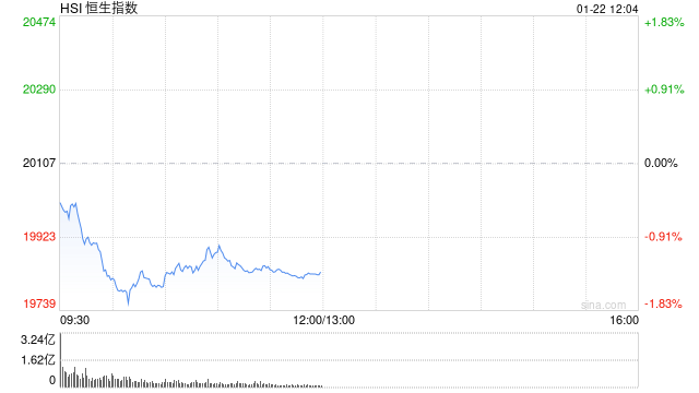 1月22日消息,港股三大指数低开低走,截至午间收盘,恒生指数跌1.34%,报19836.39点,恒生科技指数跌1.97%,国企指数跌1.59%。盘面上,科网股普遍下跌,京东跌超4%,美团跌超3%,阿里巴巴跌近3%;内房股纷纷下挫,碧桂园跌超13%;汽车股集体回调,蔚来跌近5%;半导体概念股延续涨势,中芯国际涨超2%;此外,新东方绩后大跌25%。