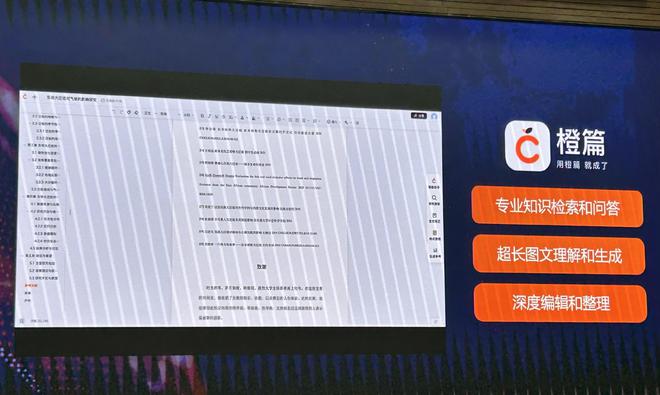 在自由画布之外,百度文库还推出了一个名为橙篇的产品,其一站式整合了专业知识检索和问答、长图文理解和生成、深度编辑和整理3大功能。在橙篇编辑器内,用户可以进一步借助AI自动优化文章内容、表格、语言风格等细节方面。