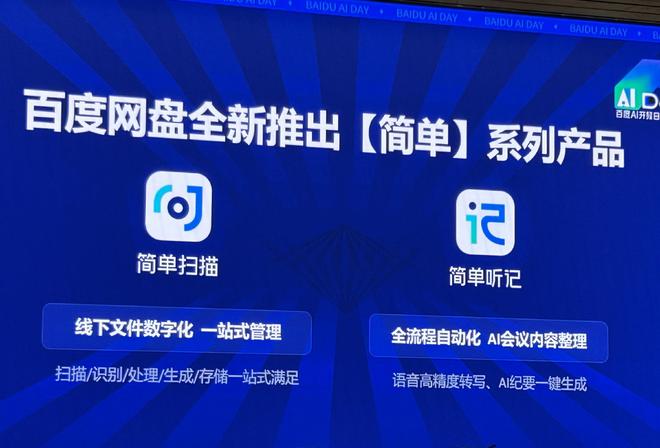 AI时代下,百度网盘将转型为一站式内容存储、管理和消费平台。相应地,其也上新了“简单”系列产品,包括简单扫描、简单听记等。