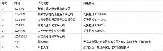 2011年6月,大连实德通过新蓝置业有限责任公司、北京富德投资有限公司、大连三德投资有限公司等入股铁岭银行,实际持有55.83%股权,成为大股东。同年12月,华汇人寿成立,背后实际出资人和实控人也是徐明。