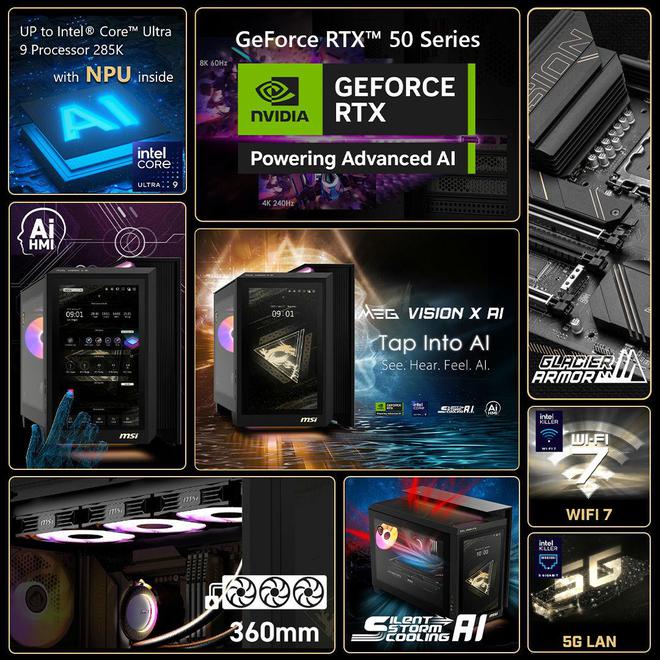 该机内部采用Project Zero背插设计,搭载360规格一体式水冷散热器(IT之家注:冷排位于顶部),配备英特尔Killer网络芯片和定制RGB内存条,同时支持Wi-Fi 7技术。