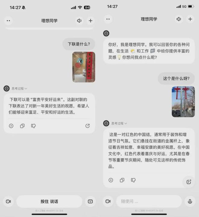 马上过年了,你让理想同学帮你对一个下联,解释一下各种春节习俗之类的,也能一答一个不吱声。