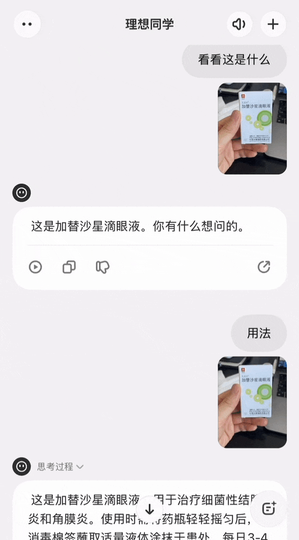 所谓“看世界”,就是支持对视频图像交互,你看到什么不懂的,直接用手机拍下来就能向理想同学提问。