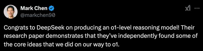 Mark Chen “态度微妙” 回应 DeepSeek:既肯定又“划重点”?