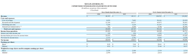 Meta在2024年第四季度净利为208.38亿美元,较上年同期的140.17亿美元增长49%。