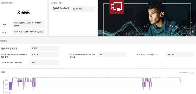 视频方面这款产品评分也达到了3666,在1080p和2K视频剪辑上有极为不错的性能支持,甚至可以满足4K短视频的剪辑需求。