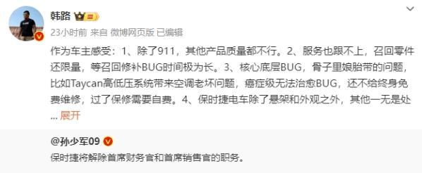 上述博主在微博中提到了作为保时捷电车车主的感受: