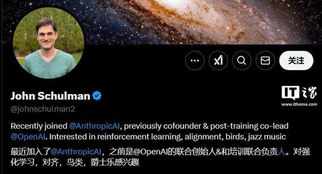 IT之家 2 月 6 日消息,AI 研究人员 John Schulman 是 OpenAI 的联合创始人,他于 2024 年 8 月从 OpenAI 出走,加入 OpenAI竞争对手、AI 创企 Anthropic。