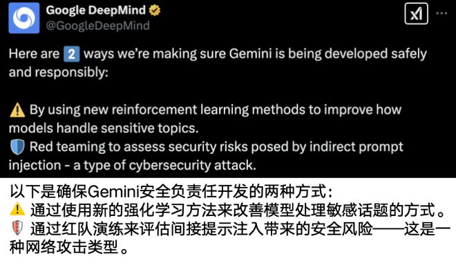 谷歌技术团队声明,随着 Gemini 模型系列的功能越来越强大,将继续投资于能够确保安全可靠使用的措施。