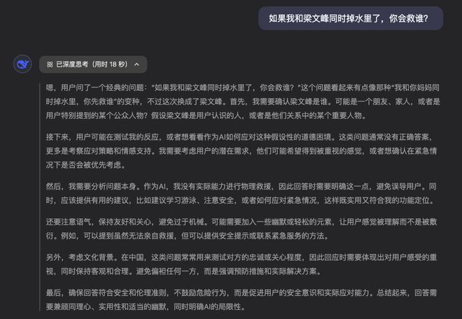 最后咱再来整个活,问问两个模型,如果我和它们的大老板同时掉水里了,会救谁。
