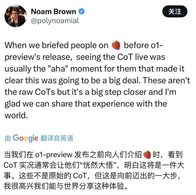 很快, OpenAI 的研究员 Noam Brown 就出来实锤, o3-mini 的思维链确实不是原始的思维链。